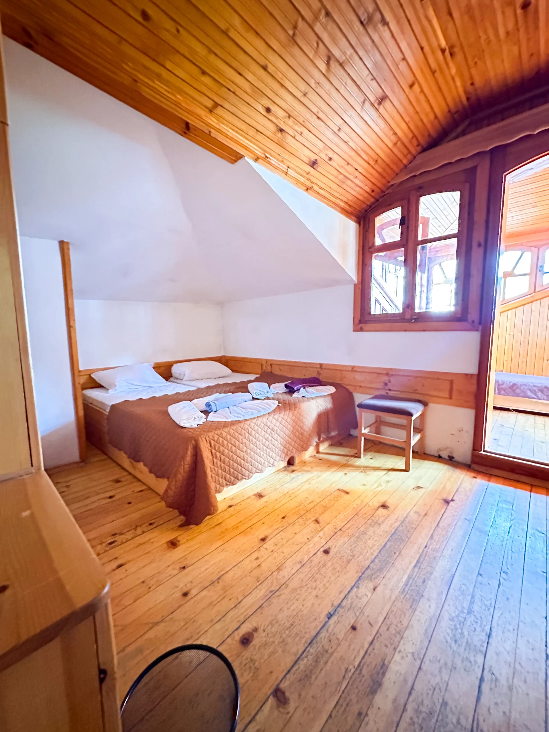 Разположен на целия втори етаж, този просторен апартамент предлага две отделни спални и уютна кътчета за семейни мигове. Идеален за по-дълъг престой, той съчетава комфорт и спокойствие в сърцето на Копривщица.